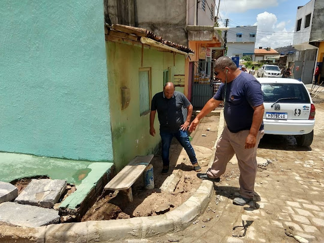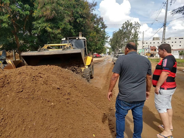 Na manhã desta quarta-feira (17), o Vice Prefeito Gena Lins esteve verificando os danos que foram causados pela forte chuva ocorrida na noite anterior e que trouxe alguns transtornos a população em vários bairros da sede do município.
